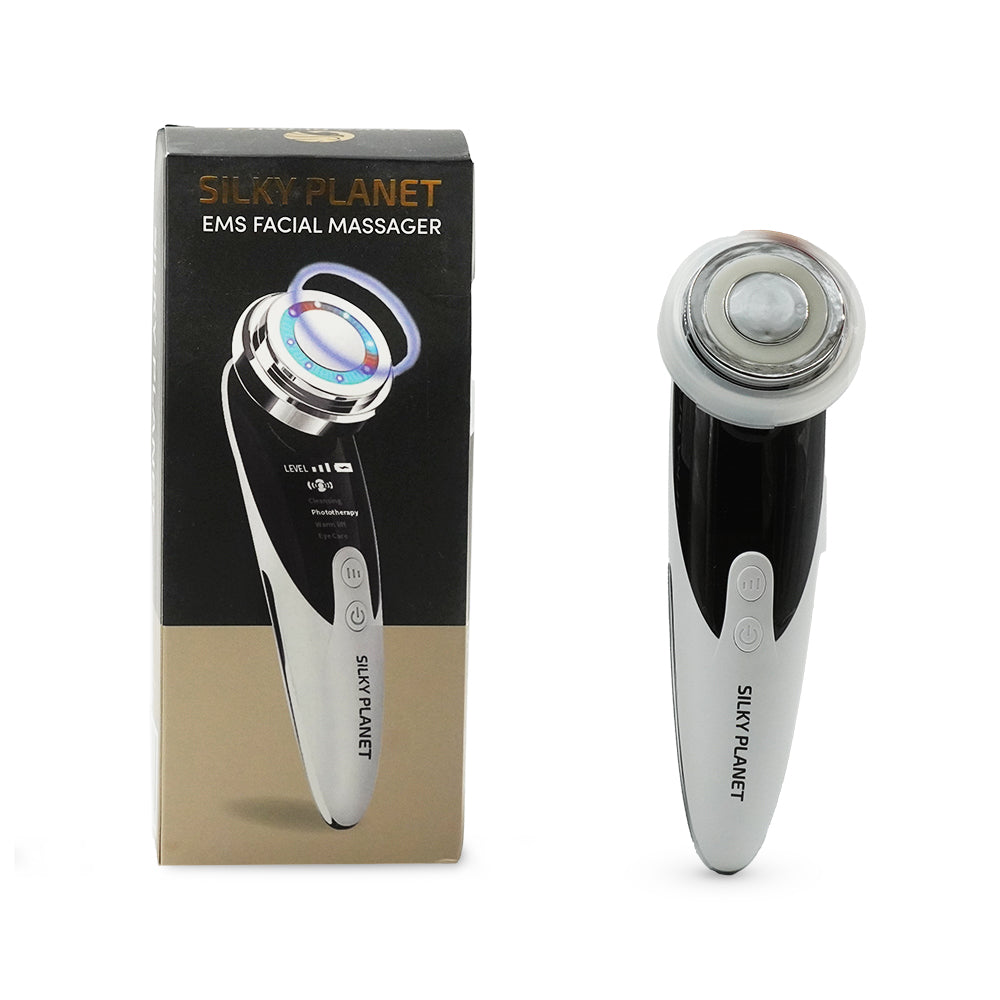 Oppdag Silky Planet EMS Facial Massager – et stilrent ansiktsverktøy for moderne hudpleie. En kombinasjon av mikrostrøm og LED-lys gir huden en behagelig behandling som passer perfekt i din daglige rutine. Enheten har flere moduser for skånsom rens, oppfriskende massasje og varmepleie. Enkel å bruke, oppladbar og ideell både hjemme og på reise.